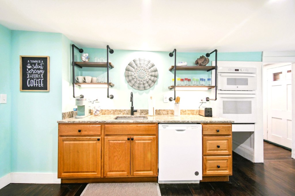 The guests are welcome to relax in the first floor sitting room and dining areas. Utilize the kitchenette and Coffee Bar 24 hours a day. We Are Freestyle with Dining meaning the guests serve themselves. Coffees, Teas, Bottled water Condiments Bagels, Bread cereals and Oatmeal Provided. The kitchenette has a refrigerator – Microwave – convection oven and Keurig Coffee bar for the guest’s convenience anytime, with Glassware / Bakeware / Utensils all provided. There is also a gas Bar-B-Que Grill available on the patio for the guests use for lunch or dinner.